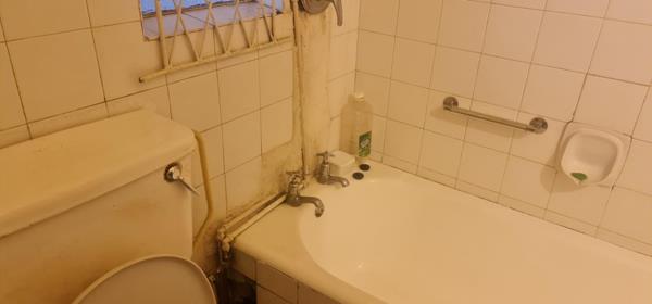 This apartment is a share block on the first floor, it offers bathroom with tub, basin and toilet.