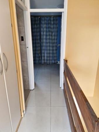 The upstairs level features a spacious main bedroom with a contemporary en-suite bathroom and built-in cupboards. A second generously sized bedroom also has modern built-in cupboards and is served by a separate bathroom with a shower.