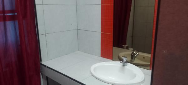 This apartment features two bedrooms, a family bathroom, a small lounge and dining area, and a kitchen. Security is well-established, including burglar bars, card access, 24-hour standby security, and a CCTV system with large monitors covering each level and passageway. The property currently generates a rental income of approximately R6,000 per month and will be vacant on transfer. It is sold voetstoots.