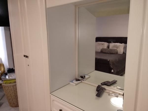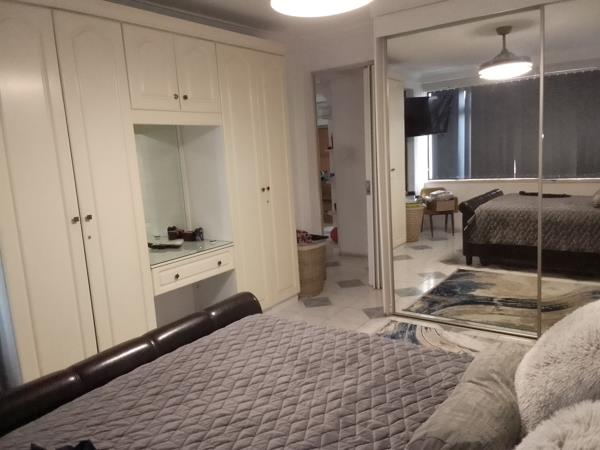 Spacious, one bedroom apartment, with beautiful glossy floor tiles, separate kitchen with an extractor fan on top of the stove, ceramic stove, spacious kitchen cupboards, and a kitchen window facing onto the clean building passage on the way to the lift, from the kitchen into the short passage a luxurious bedroom with mirror cupboards spacious for all him and her clothes with a Sea View, in the same small passage past the bedroom a luxurious spacious bathroom with bath and shower tiled, exiting the bathroom back to the passage to the front door and kitchen is a large dining roomlounge with a beautiful Sea View.