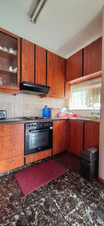 Step inside to a functional layout designed for easy living. The kitchen is ready for your culinary adventures with warm-toned wooden cabinetry, a built-in oven, hob, and extractor fan, plus a tiled backsplash. The lounge is a great space to unwind with natural light streaming in, it also offers 2 bedrooms, each with extensive built-in wardrobes and a cool staircase that leads to a loft bedroom. The bathroom is fully equipped with a bathtub, toilet, and basin, all tiled for practicality.