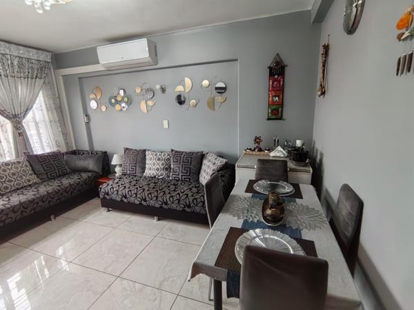 Recently renovated flat situated in the heart of Overport with top end finishes throughout. This flat comes with porcelain tiles and highly polished Swiss- parquet floors and aluminium windows throughout. The beautifully renovated kitchen is a cooks dream with granite tops, extractor, undercounter oven and stove top. The lounge and dining room is open plan with an air conditioner and large windows allowing for natural light throughout.