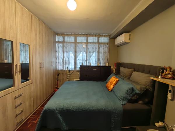 The full bathroom has been upgraded to include bath, shower, toilet and washbasin. The 2 bedrooms are generously sized with lots of built in cupboards, air conditioner in the main bedroom. There are 3 park bays and water included in the levy. This flat comes with lots of extras braai area, communal boardroom, in -house mosque, 24 hours security with armed response and security cameras throughout the property. Well run Body Corporate. Conveniently situated close to schools, places of worship, shopping centres and easy access to the beaches.
