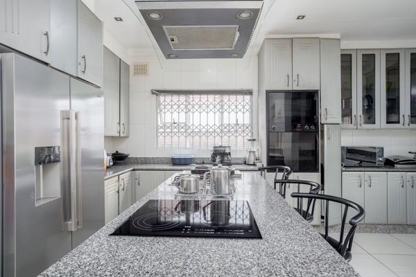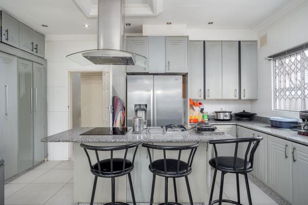 Huge fully fitted kitchen with granite countertops and centre island. Fitted with both gas and electric stove.