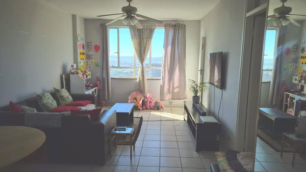 it features a spacious 1-bedroom layout with lounge, dining area, and kitchen
