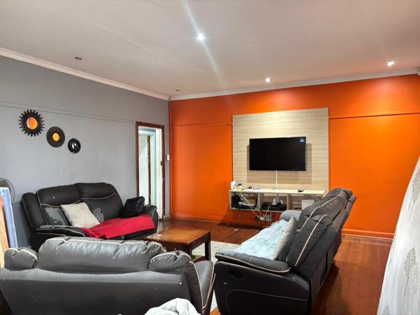 This 3-bedroom home offers spacious living with tiled floors throughout the bedrooms. The main bedroom includes a walk-in closet, the second bedroom has built-in wardrobes, and the third bedroom is fitted with an air conditioner. The home features an open-plan lounge and dining area with wooden floors, a fully fitted kitchen with built-in cupboards, and two bathrooms the main bathroom with a shower, bath, basin and toilet, and an en-suite with a shower, toilet and basin. A patio, flatlet and double garage add extra convenience and flexibility.