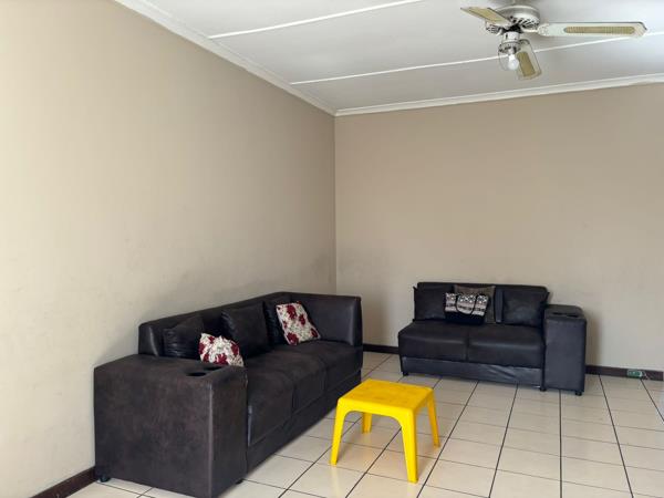 Welcome to this sleek and spacious two-bedroom flat, fully tiled throughout for a stylish and low-maintenance living experience. The property features a bright and airy lounge that opens up to a cozy balcony, perfect for relaxing. The kitchen is well-equipped with built-in cupboards, offering plenty of storage space.