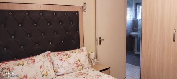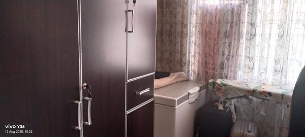 2nd Bedroom: Aircon, tiled floors, built-in cupboards, fits a double bed, curtain rails