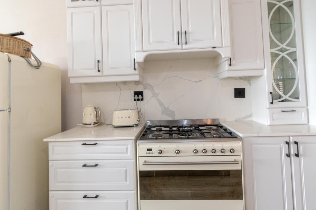 Stunning finishes to a modern open plan kitchen with granite countertops in fashionable tones.