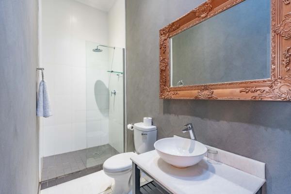 Comfort and efficiency are enhanced with air conditioners in most rooms, solar panels, and gas geysers. The property also offers secure parking for four cars.