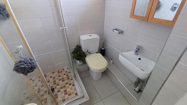 This stylish 2-bedroom apartment offers comfortable living with modern finishes and ample space, making it ideal for a small family or professionals. The two spacious bedrooms come with built-in cupboards, providing plenty of storage. The main bedroom is equipped with air conditioning for added comfort and includes an ensuite bathroom with a shower, loo, and basin.