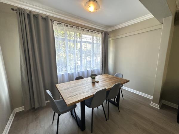 Legacy Real Estate Group presents a stunning 2-bedroom, 1 bathroom apartment for sale on Florida Road. The unit boasts a fitted kitchen, open plan lounge and dining area, and one parking bay . Electricity and water are municipally billed. Situated in a secure building complex, 3 minutes from Windermere Centre and 5 minutes away from Clarence Primary School.