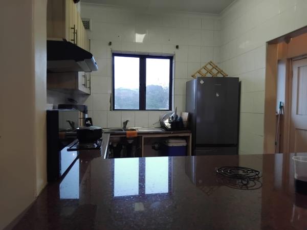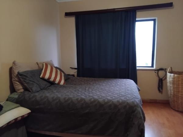 The apartment is fully tiled and boasts spectacular views of the iconic Moses Mabhida Stadium. Both main bedrooms are generously sized, featuring beautiful wooden flooring and built-in cupboards. The full bathroom includes a shower, bathtub, sink with a mirror, and there is a separate toilet for added convenience.