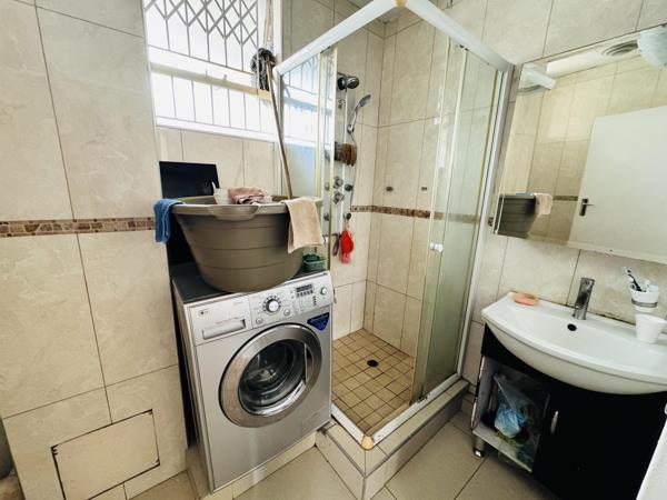 1 Bathroom with shower, loo, and plumbing for a washing machine