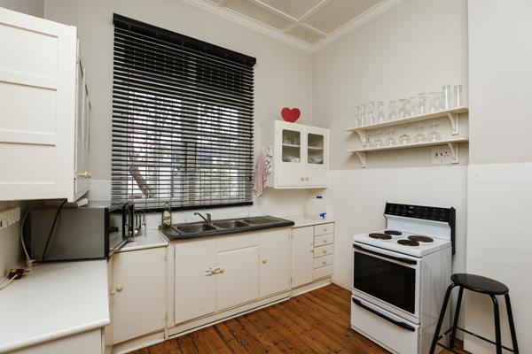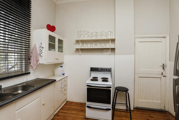 Two bathrooms and a neat kitchen with a free-standing stove.