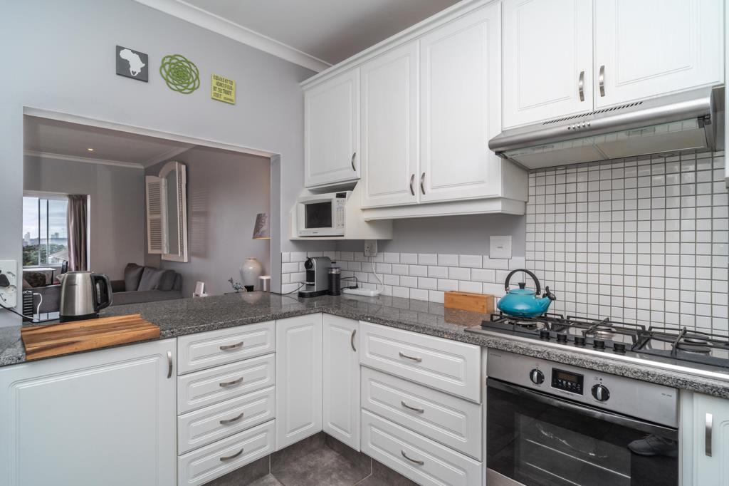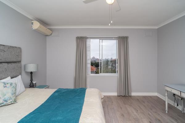 Stunning laminate floors greet you as you open up the door to a stylish open plan kitchen, overlooking the living area, fitted with stone counters, plenty of built in cupboards, built in stove, oven and extractor and breakfast nook. Experience mornings differently when you enjoy the sunrise from the spacious lounge and living area with beautiful sea and stadium views through the large sliding windows. Both bedrooms are of good size and are fitted with built in cupboards and airconditioner in the main while the trendy full family bathroom is fitted with bath tub, shower, basin and separate toilet.