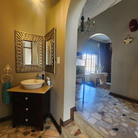 Upstairs, youll find four well-sized bedrooms, each featuring its own private bathroom with a shower, toilet, and basin. Adding to the homes charm, each bathroom is fitted with a unique antique vanity, creating a timeless elegance. Beautiful chandeliers enhance the character of this home, adding a touch of sophistication. For added practicality, there is a separate laundry area integrated with a staff room and an additional outside bathroom. The property also features a swimming pool that requires a full revampoffering the perfect opportunity to create your dream outdoor space.