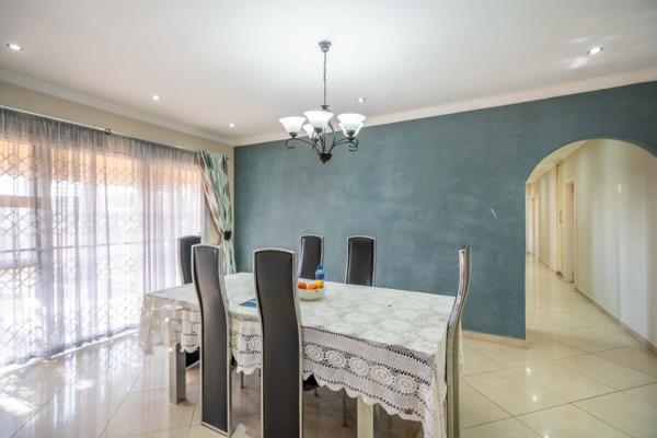 A beautiful home that welcomes you offering 2 separate lounges, 5 spacious bedrooms, 4 with BIC, with 2 en-suites, a full bathroom and a guest toilet. Additional room to be used as a study or prayer room. The gourmet kitchen is very spacious with fully fitted BIC, granite tops, breakfast nook, separate scullery with additional BIC, its plumbed for washing machine, dishwasher, tumble dryer and a freezer! The automated double garage has a fitted single BIC for storage and has an entrance into the kitchen. Just perfect when you home with your kids or your groceries! A lovely covered awning area next to the pool plus a lapa makes it great for entertaining guests. This property ticks boxes for any buyers with kids, a large family or looking for proper work from home space OR a home business OR use it as a studio apartment for additional income-with a complete separate entrance too! This home ticks all the boxes and you can just move in.