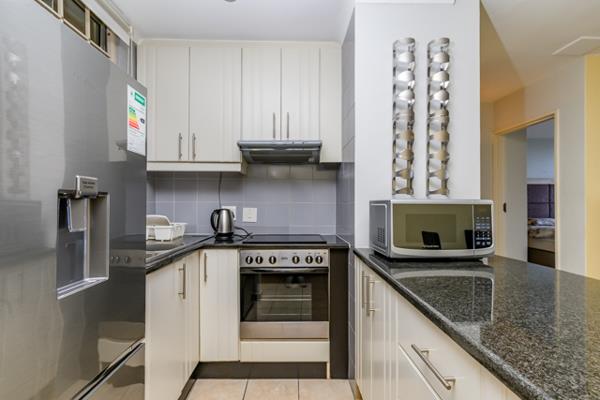 This one bedroom apartment is open plan overlooking the lush green grounds with a swimming pool and tennis court. There are designated braai areas for those that just want to relax and enjoy a South African Braai.