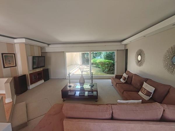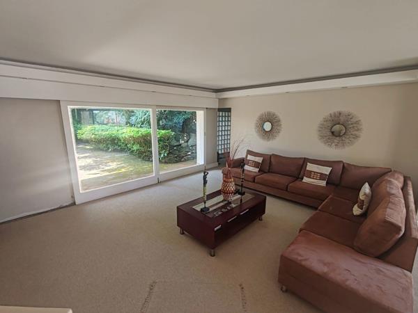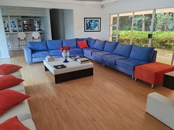 Boomed Security With Breathtaking Seaviews. Situated in a private cul-de-sac in Durban North with 24/7 boomed security, this stylish home is designed for social gatherings with 2 expansive lounges, bar room and dining room with serving hatch into on oak kitchen with centre island. One lounge opens onto a wooden deck (in need of tlc) and a plunge pool with vistas of the ocean and stadium. There is a second sparkling swimming pool for the more energetic.
