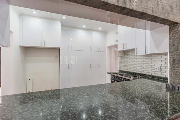 The heart of the home is a stunning high-sheen kitchen, complete with a 6-plate gas hob, granite countertops, and a separate scullery. The kitchen flows into the dining area, where stacker doors open onto a charming, covered patio, perfect for outdoor meals or relaxing with family and friends, adjacent to the dining area is the spacious lounge also opening onto a veranda.