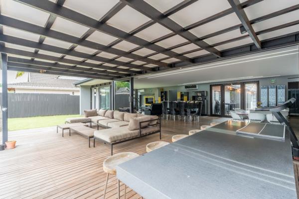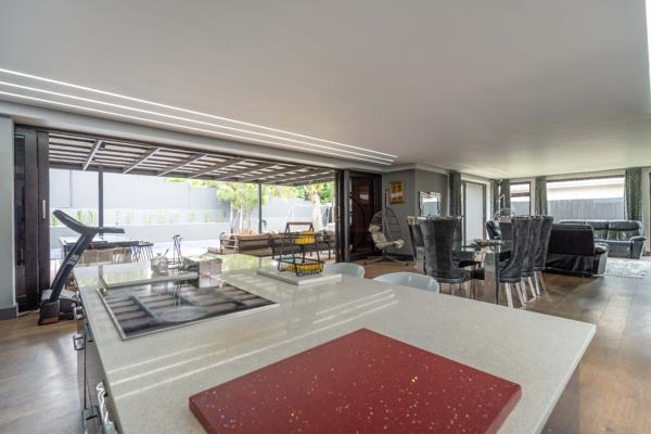 Massive open-plan space flowing to decked outdoor lounge and entertainment area