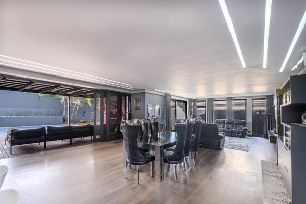 The entertainment area seamlessly opens to the pool, creating the perfect space for hosting guests while enjoying the scenic surroundings.