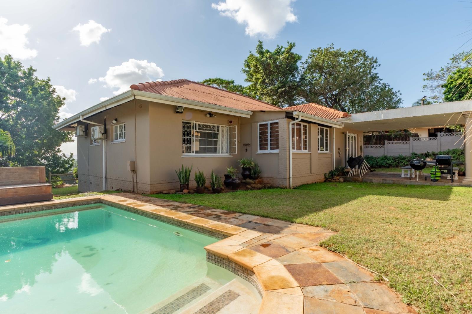 This beautiful renovated three-bedroom home features a modern granite kitchen with a central island, perfect for everyday living and entertaining. The spacious layout flows seamlessly onto a covered patio that overlooks a sparkling pool and well-maintained garden, creating an inviting outdoor living oasis. A single garage, separate staff room, full perimeter walls for added privacy, and extra off-road parking for convenience. Enough room to build a second dwelling.
