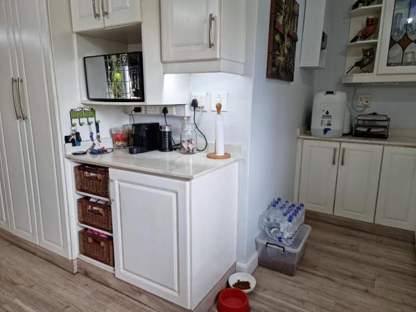 The flatlet is spacious and self-contained, offering a lounge, kitchenette, built-in desk, and bedroom with plenty of cupboards. Its perfect for extended family or to generate extra income.