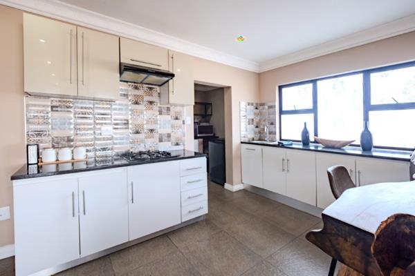 Step into a bright, open-plan living area with a modern fitted kitchen featuring granite tops, a gas hob, and a discreet scullery. The generous lounge and dining space flows onto a large balcony, plus a charming courtyardperfect for pets. This level also boasts a lovely ensuite bedroom with so much comfort appeal.