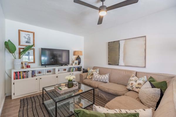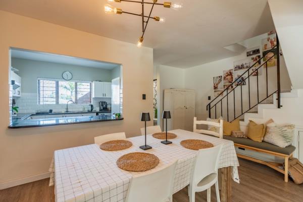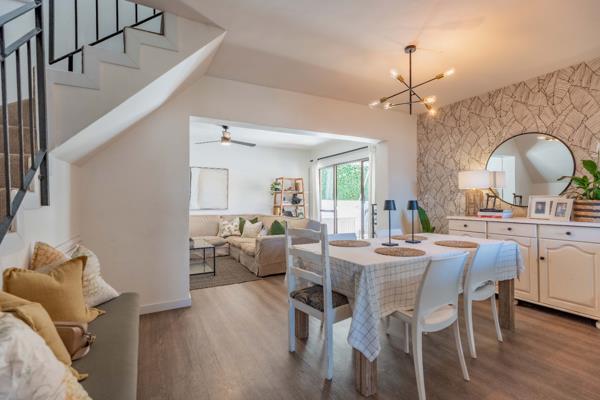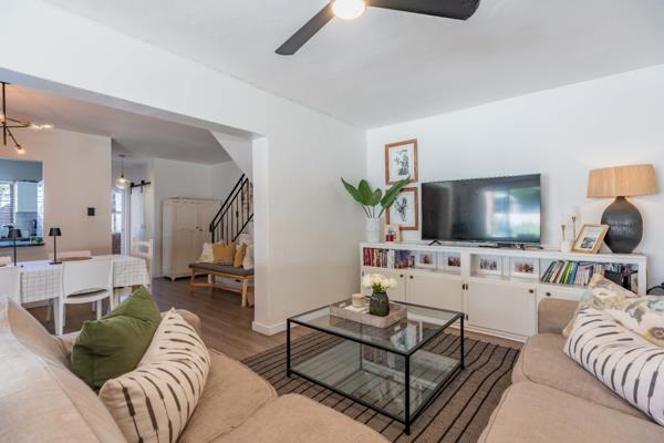 Discover modern living in this inviting 3-bedroom, 2.5-bathroom residence located within a desirable complex in Umgeni Park, Durban North. Spanning 150 square metres, this home is thoughtfully designed with an open-plan layout that seamlessly connects the living, dining, and kitchen areas, creating a bright and airy ambience. The interior boasts contemporary wood-look flooring, crisp walls, and stylish light fixtures, including modern lighting throughout and a ceiling fan in the lounge.