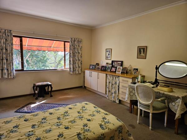The bedroom is a bright and comfortable space, complete with carpeted flooring and built-in cabinets for practical storage. A large window, fitted with an external awning, ensures ample natural light. The bedroom has a shower en suite.