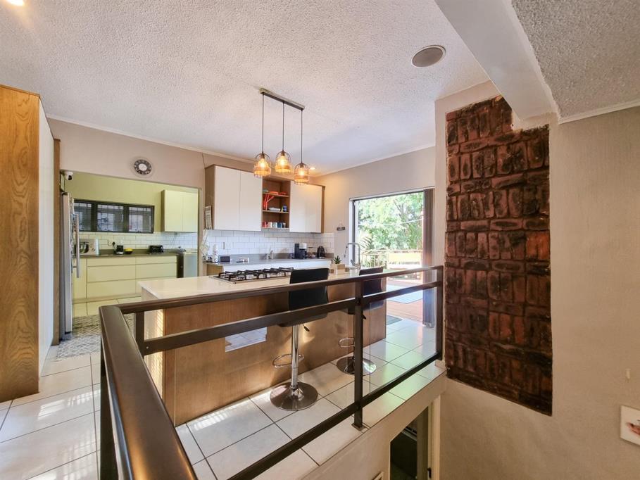 At road level, youll find an automated double garage providing secure parking and easy access to the home. A staircase leads you down to the open-plan living area, where a spacious lounge and dining room flow seamlessly together. The office space offers a quiet retreat, ideal for working from home. On the same level, the modern kitchen and scullery are designed for practicality and style, with easy access to a delightful deck that overlooks the expansive yard.