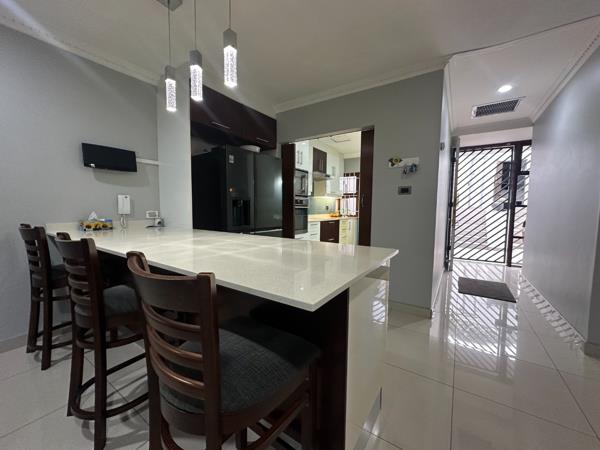 Situated in the lush greenery of Umgeni Park, this stunning 3-bedroom, 2-bathroom simplex perfectly combines style, comfort, and functionality offering serene living with modern finishes throughoutStep inside to find beautiful drop lighting and tastefully selected flooring that flow seamlessly through the home. The kitchen is a true showpiece, featuring sleek gloss-white cupboards, ample storage, and plumbing for a dishwasher. It opens onto a charming courtyard, ideal for a small herb garden.