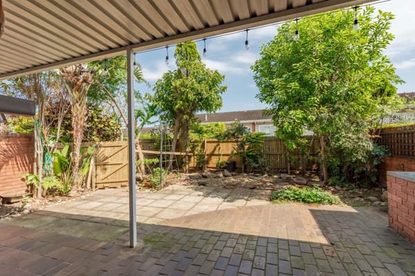 The property features three spacious bedrooms and two bathrooms, all conveniently located upstairs. The living area boasts an open-plan lounge that flows into an enclosed patio, providing a lovely space to relax while overlooking the tranquil garden. The dining area opens onto the garden through sliding doors, creating seamless indoor-outdoor living.