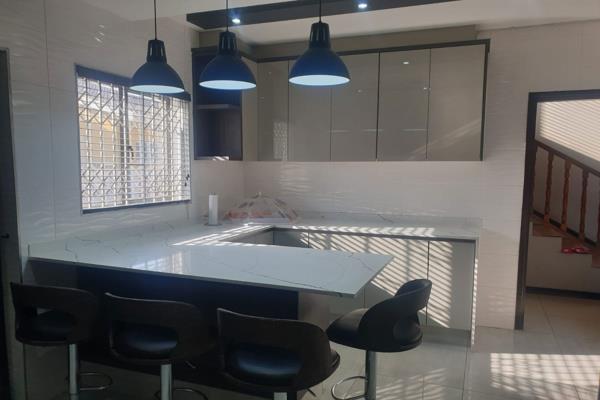 Beautiful Corner and Modern Family House | Isipingo Beach. This double-story, corner house is located in a good area for families and is very spacious, with contemporary amenities. The ground floor features an open-plan living area that connects smoothly to a large dining room, a private TV room, a lounge, and a sunroom. The sunroom leads to a large, low-maintenance artificial grass garden that is ideal for outdoor use.
