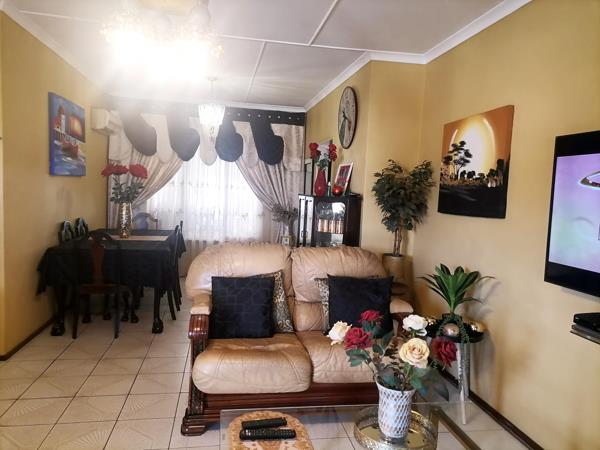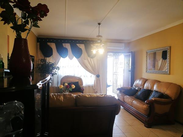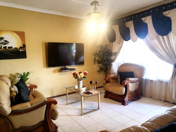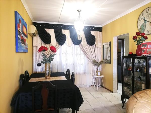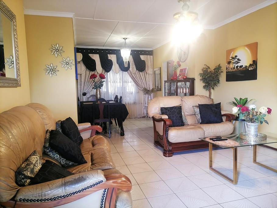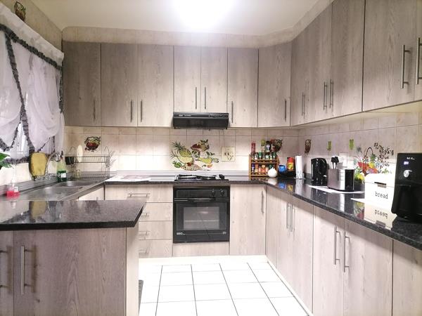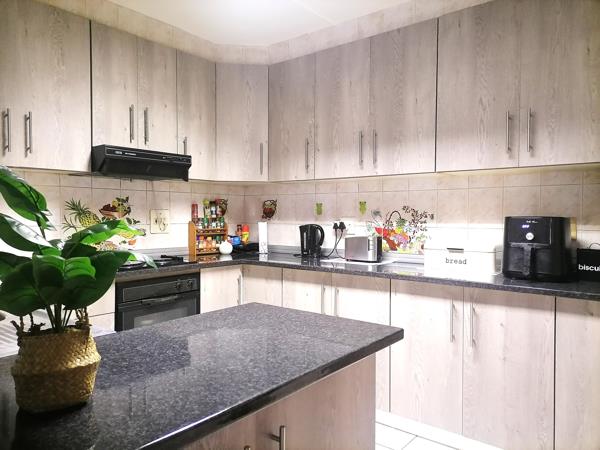 The entrance sets the tone with an inviting open-plan living area that leads gracefully into a modern kitchen, adorned with modern built-in cupboards and a sleek granite countertop. An expansive scullery/laundry room stands conveniently adjacent to the kitchen for both functionality and convenience.