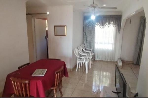 The spacious, well-appointed kitchen comes complete with built-in cupboards, an extractor fan, eye-level oven, and stoveperfect for those who love to cook. Flowing seamlessly from the kitchen, the dining area and inviting lounge create a warm setting for family gatherings, enhanced by curtain rails, tiled floors, and a ceiling fan.