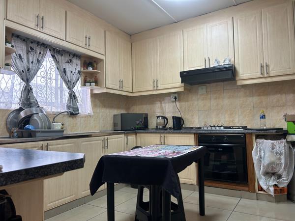 3 Bedroom fitted with built in cupboards and smartly tiled, 1 with air conditioning, and 1 with walk in closet and en-suite. A family bath with toilet and 1 separate toilet. all neatly tiled. A modern lounge and open plan dinning fully