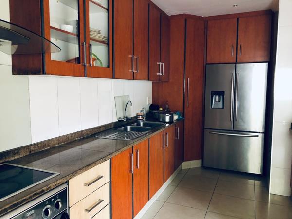Consisting of three bedrooms with built-in cupboards and a full bathroom. Unusually large kitchen with granite countertops and plenty cupboard space. Dining room and spacious lounge with lovely stone features. in Montclair. The pool, lapa and braai area will assuredly be the gathering place where family and friends can enjoy themselves to the fullest. Wooden deck area to entertain and relax!