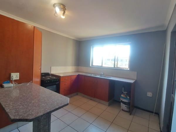 Thisa 1st floor flat is an open plan lounge and kitchen. Fully fitted with cupboards and a stand alone stove which is to stay and a place for your washing machine.