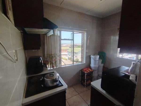 Top floor unit that welcomes a new family or investor Step into a large open plan lounge with great views of Montclair , a neat Kitchen with built in Stove & Oven. The apartment has 2 very spacious bedrooms with Built in cupboards. and secure parking inside your own Garage. (Garage Levy is R420,30 and Ombudsman R33,51)