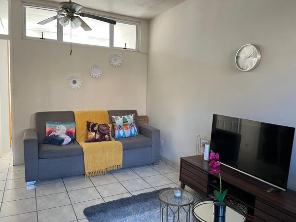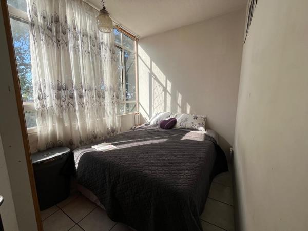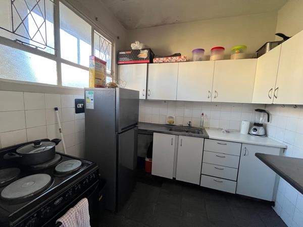 This well-maintained ground floor flat offers 1.5 spacious bedrooms, including a main bedroom with built-in cupboards. The unit features an open-plan lounge and dining area, creating a welcoming and airy living space.