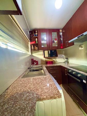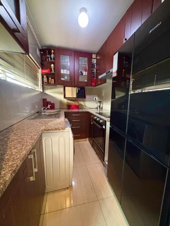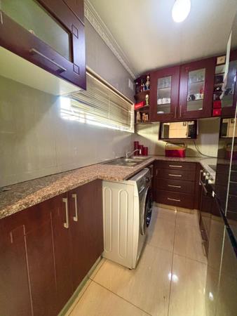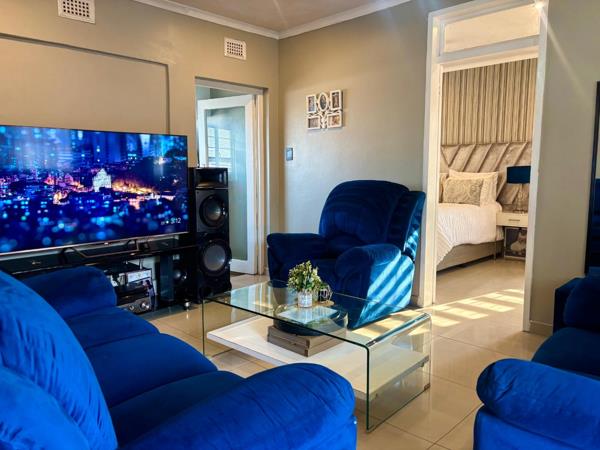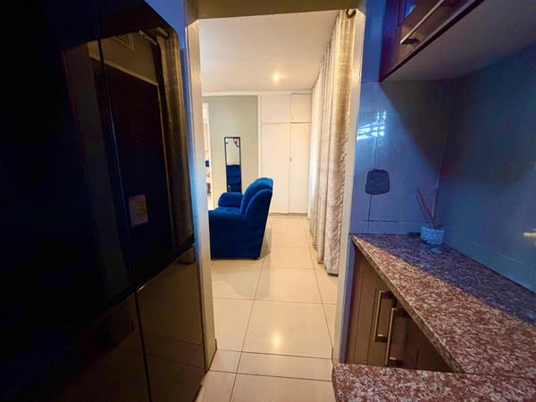 This charming 1.5 bedroom home offers a serene living experience with its beautifully appointed main bedroom featuring an en-suite, a neat half bedroom with tiled floors and built-in cupboards, a stunning lounge with skimmed ceiling, downlights, and a gorgeous chandelier, and a fully fitted kitchen with stove, glass top, and fitted oven, plus tiled walls and floors.