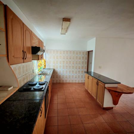 Step inside to an open-plan lounge and kitchen area, designed for functional everyday living. The kitchen features ample wooden cabinetry, dark granite-look countertops, and a built-in stove with oven, alongside a convenient breakfast bar. While offering a solid foundation, this space provides an excellent opportunity for the new owner to infuse their personal style and modern updates, transforming it into a contemporary culinary hub.