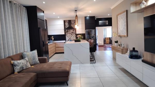 Step into light-filled, open-plan living areas that flow effortlessly between two lounges, a dining room, and an ultra-modern kitchen perfect for both relaxed family living and elegant entertaining. The kitchen, sleek and contemporary, overlooks the TV lounge, while the formal lounge opens directly into the dining room, creating a harmonious layout for everyday comfort.
