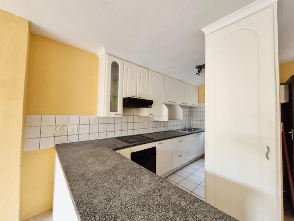 The open-plan design boasts a fully fitted kitchen flowing seamlessly into a bright lounge. Enjoy the convenience of undercover parking for two cars. The complex offers fantastic amenities, including a sparkling communal swimming pool and a built-in braai area for all your social gatherings.