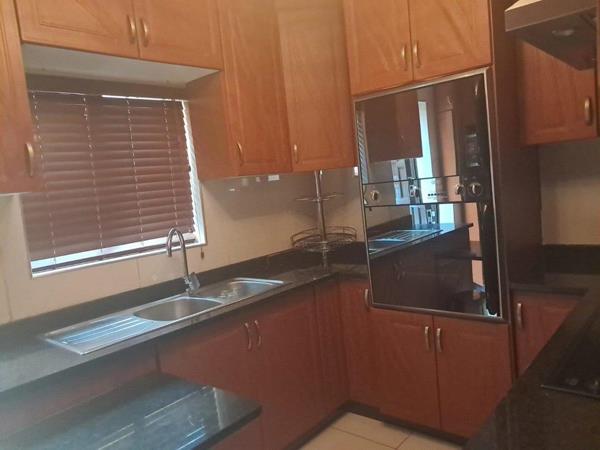 The kitchen is a highlight, fully fitted with modern cupboards and a stove, making meal preparation a joy. The dining and lounge areas, creating a perfect space for family gatherings and entertaining guests.
