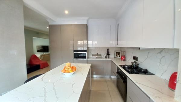 3.Open-plan kitchen with quartz countertops, centre island which allows for seating, gas hob and electric under-counter oven