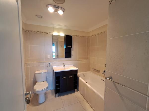 This 2-bedroom apartment offers a master suite with en-suite bathroom, guest toilet, and ample cupboards. The open-plan living area has air-conditioning in the bedroom and lounge, plus a modern kitchen with a glass-top hob and oven.